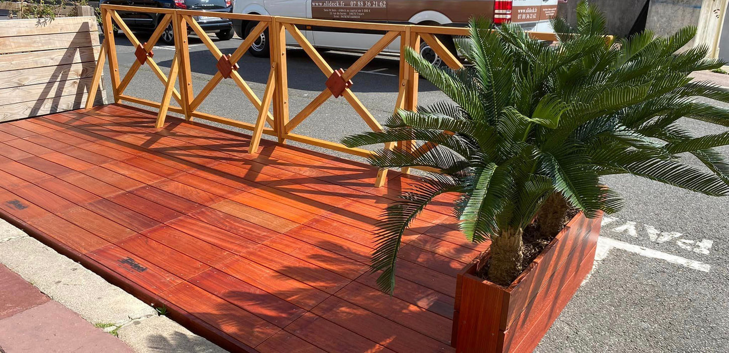 Slideck propose la location de kits de terrasses en bois et de mobilier en bois, une nouveauté pensée pour les entreprises.